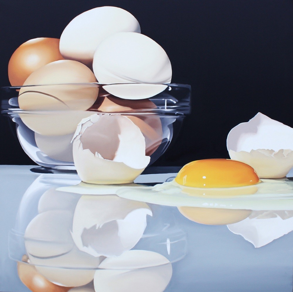 L'opera è nata quasi per caso quando mi è caduto l'occhio sul cumulo di uova che avevo grazie alle mie fruttuose gallinelle. Da quel momento non pensavo ad altro che riprodurre quelle forme perfette e quei colori incantevoli.